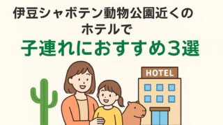 旅行 伊豆シャボテン動物公園近くのホテルで子連れにおすすめ3選 伊豆シャボテン動物公園周辺で子連れで行くのにおすすめなホテルをご紹介します。 こんなお悩みありませんか? お悩み 伊豆シャボテン公園に行きたいけど、子連れで泊まりやすいホテルが分からない 小さな子どもがいても安心して泊まれる宿を探している ... 2025.10.04 旅行