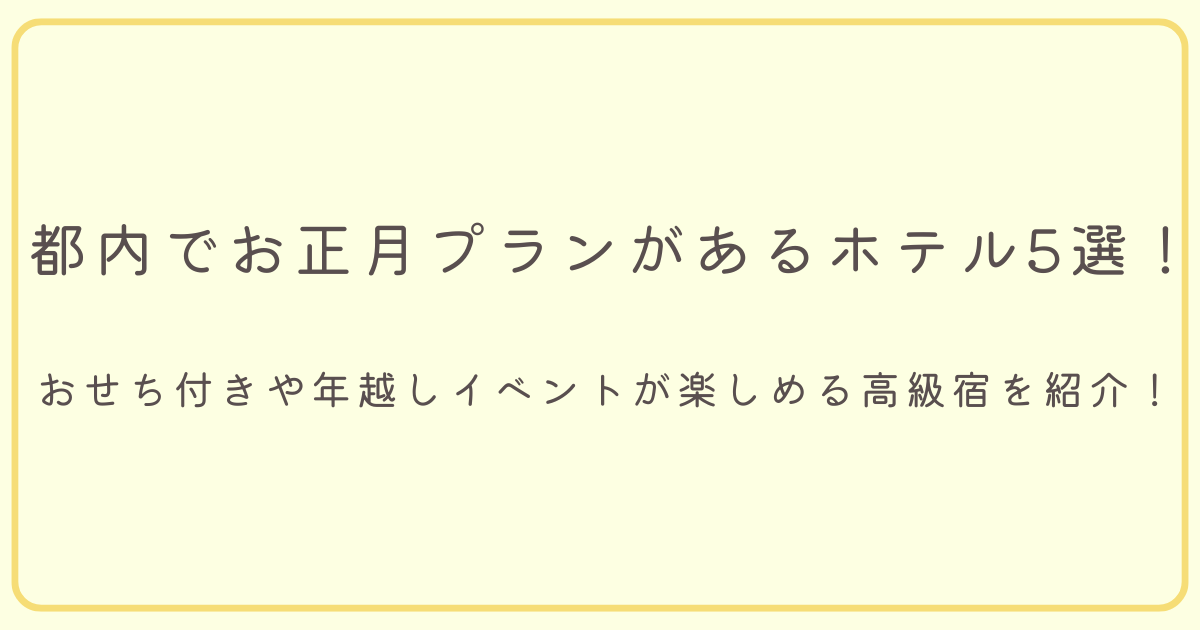都内でお正月プランがあるホテルについて紹介します。